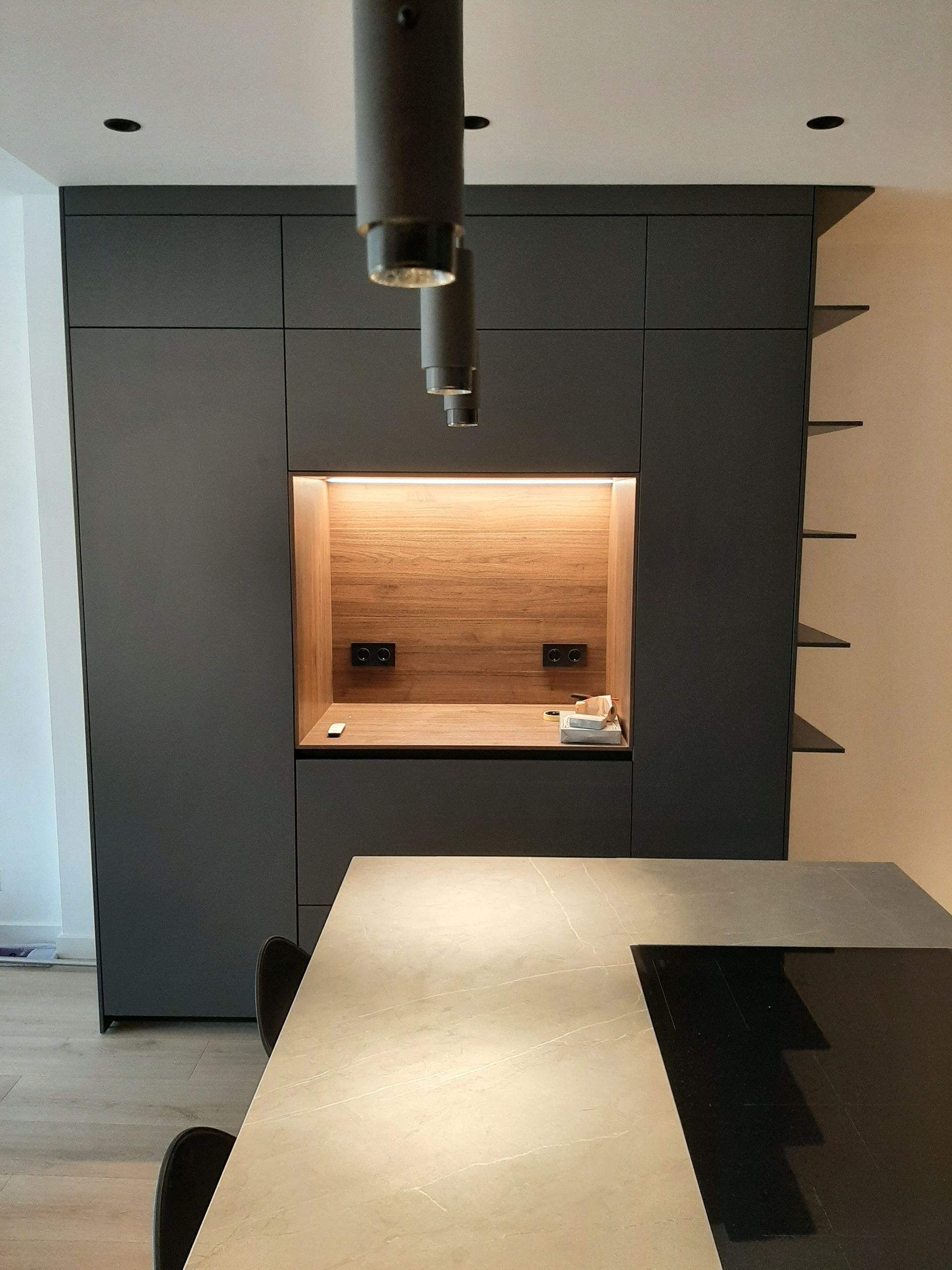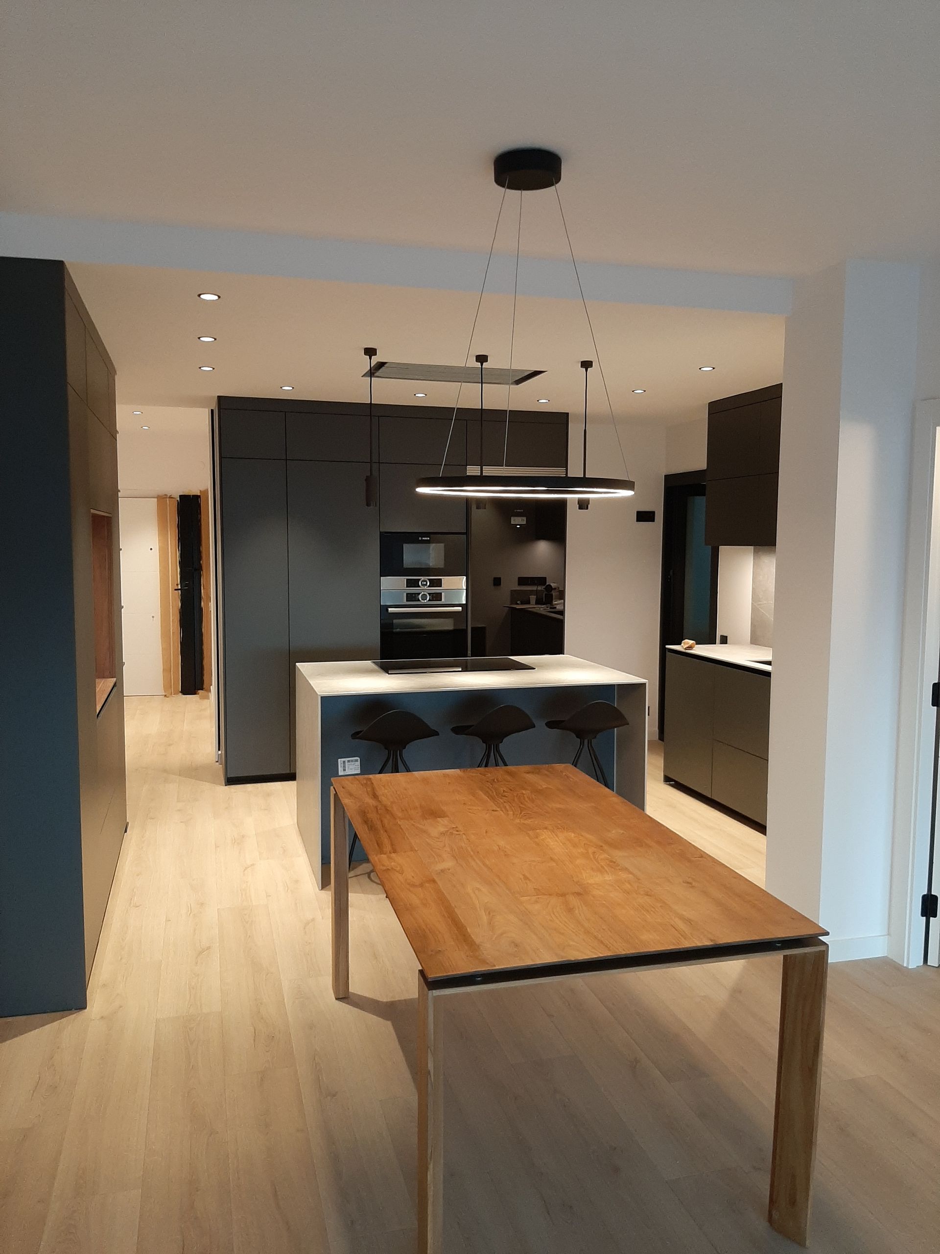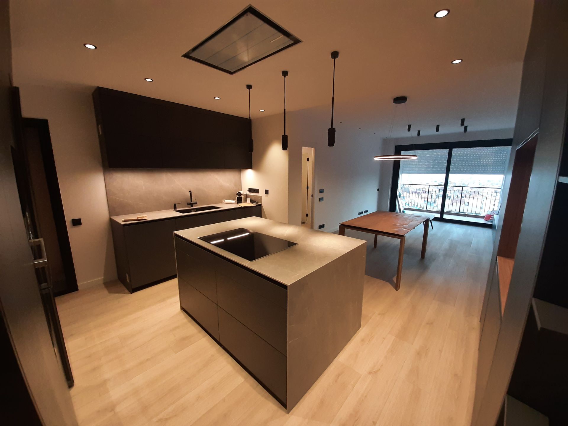 Reforma interior completa del piso de un matrimonio con una hija, con unos requerimientos muy concretos. Optimizar al máximo el espacio de uso común, dotando al piso de un espacio donde la familia pueda desarrollar el día a día de una manera unida, compartiendo vivencias y experiencias. Por ello se plantea un espacio diáfano con cocina integrada en la zona que da acceso a la terraza con vistas sobre toda Barcelona.