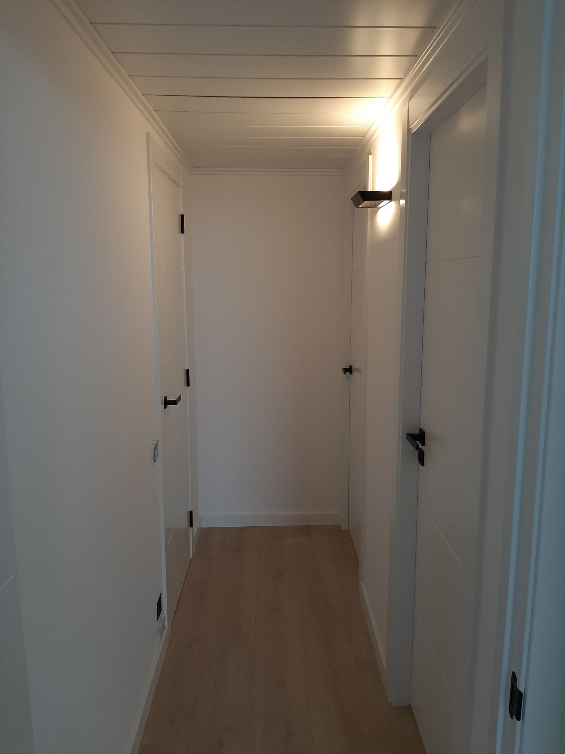 En contraposición con este espacio de vida conjunta, se desea que la zona de habitaciones, matrimonio e hija quede separada y claramente diferenciada. En este sentido se coloca la zona de matrimonio junto al comedor con un baño independiente, junto a un estudio o sala de trabajo, quedando la habitación de la hija junto a la entrada con otro aseo incorporado e independiente.