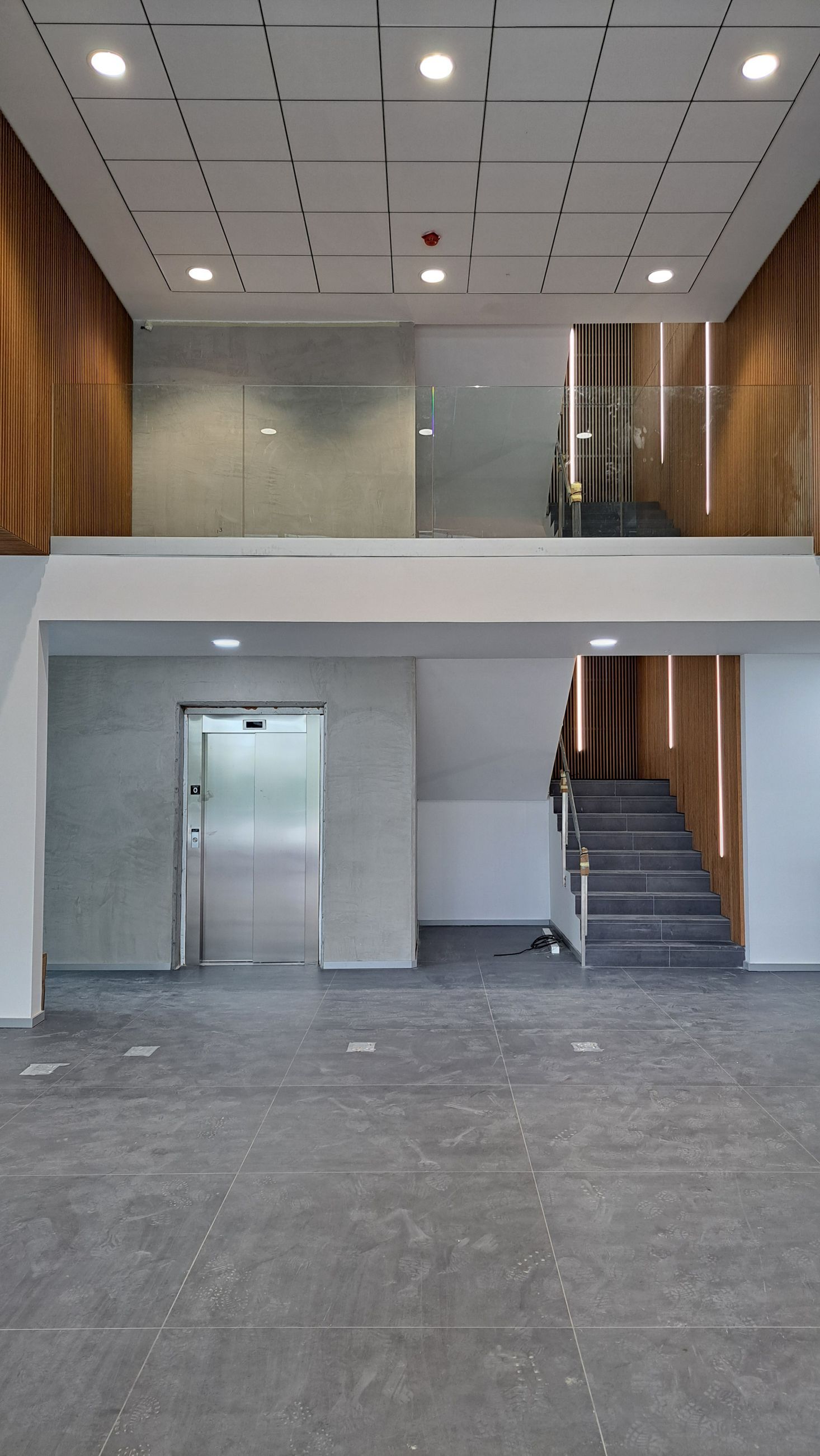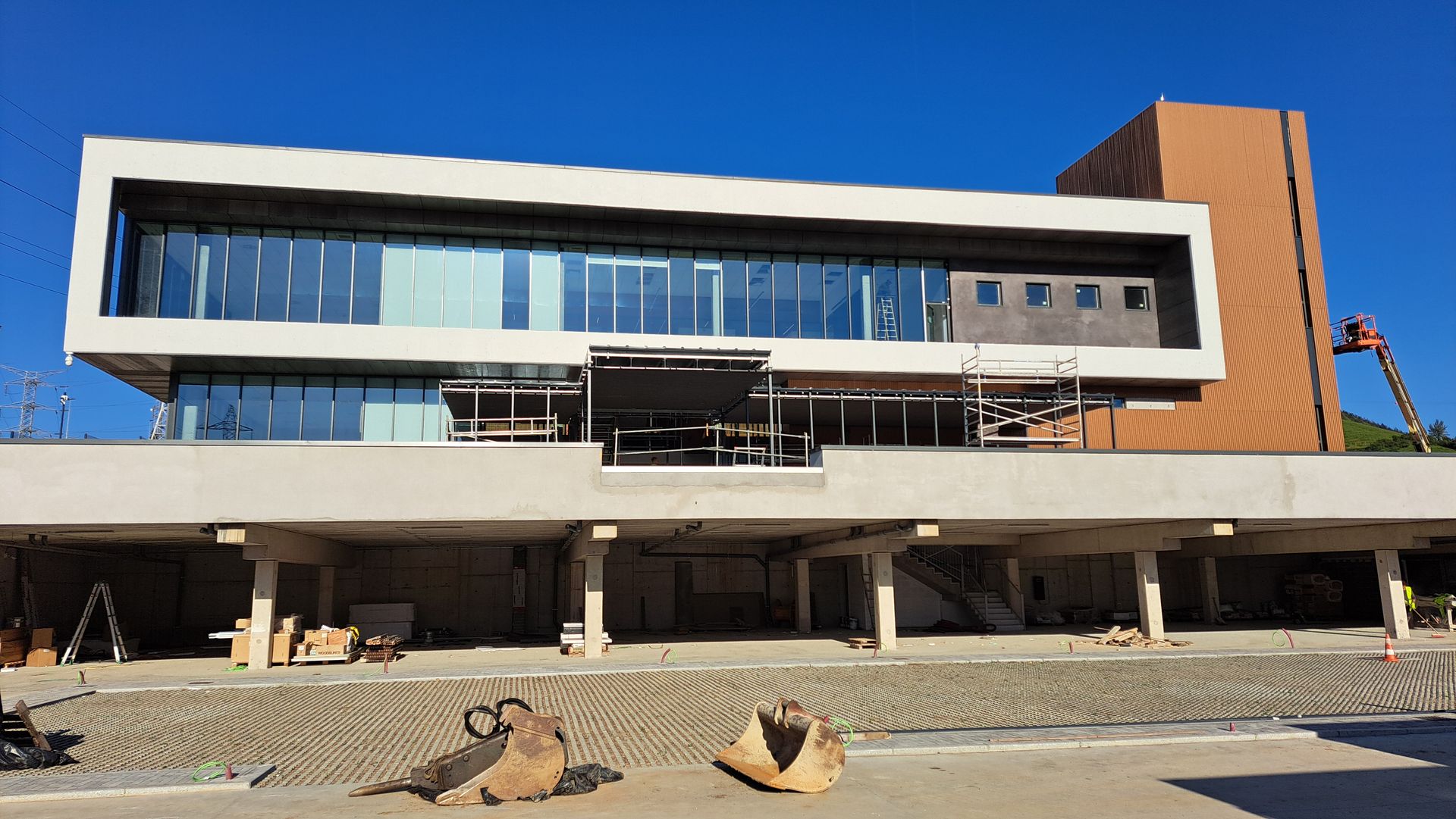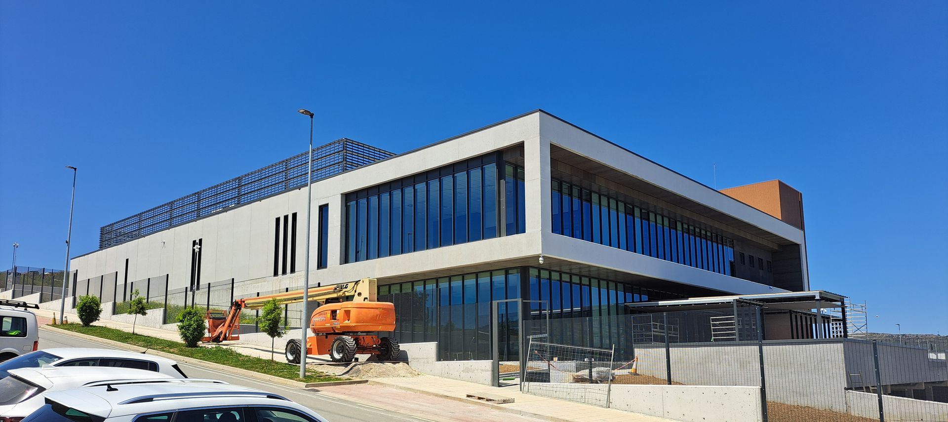 Edificio con programa funcional mixto, uso industrial CPD y de oficinas. El edificio debe adaptarse a un solar con una pendiente considerable, de manera que se integre en el entorno y minimice el movimiento de tierras, roca en este caso. Aprovechando la pendiente se coloca la zona de oficinas de doble planta en la parte frontal, la que dispone de unas vistas impresionantes, dejando la parte industrial de uso de procesamiento de datos en la zona posterior.