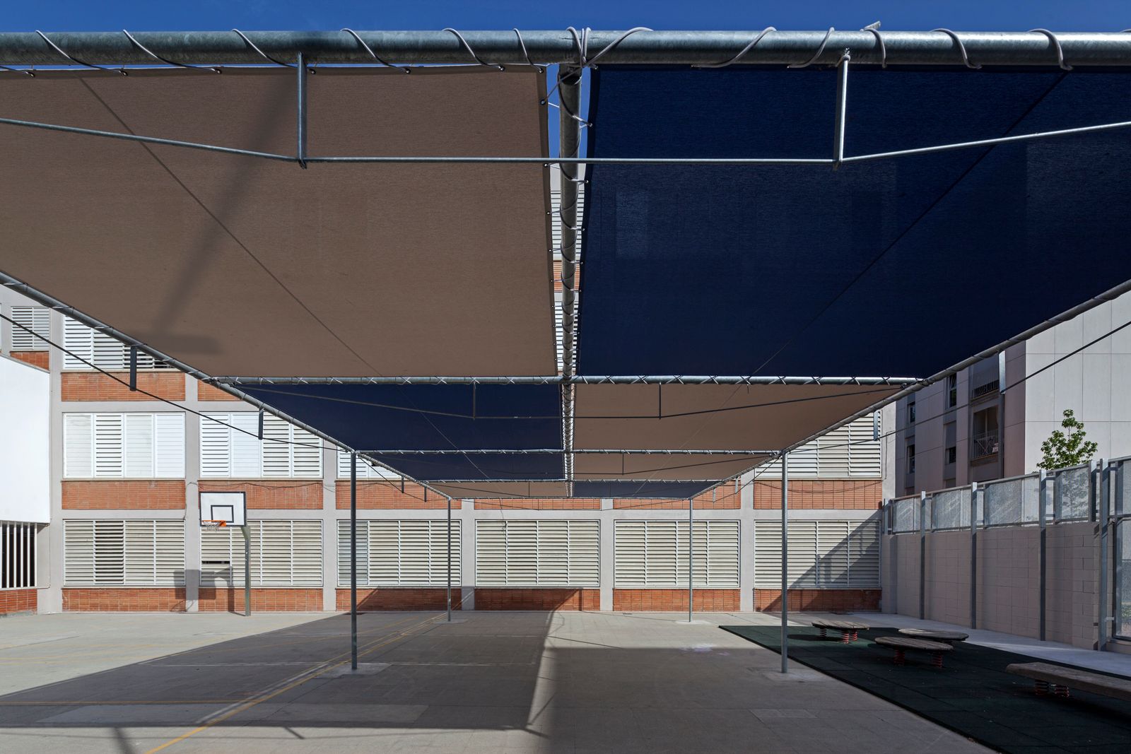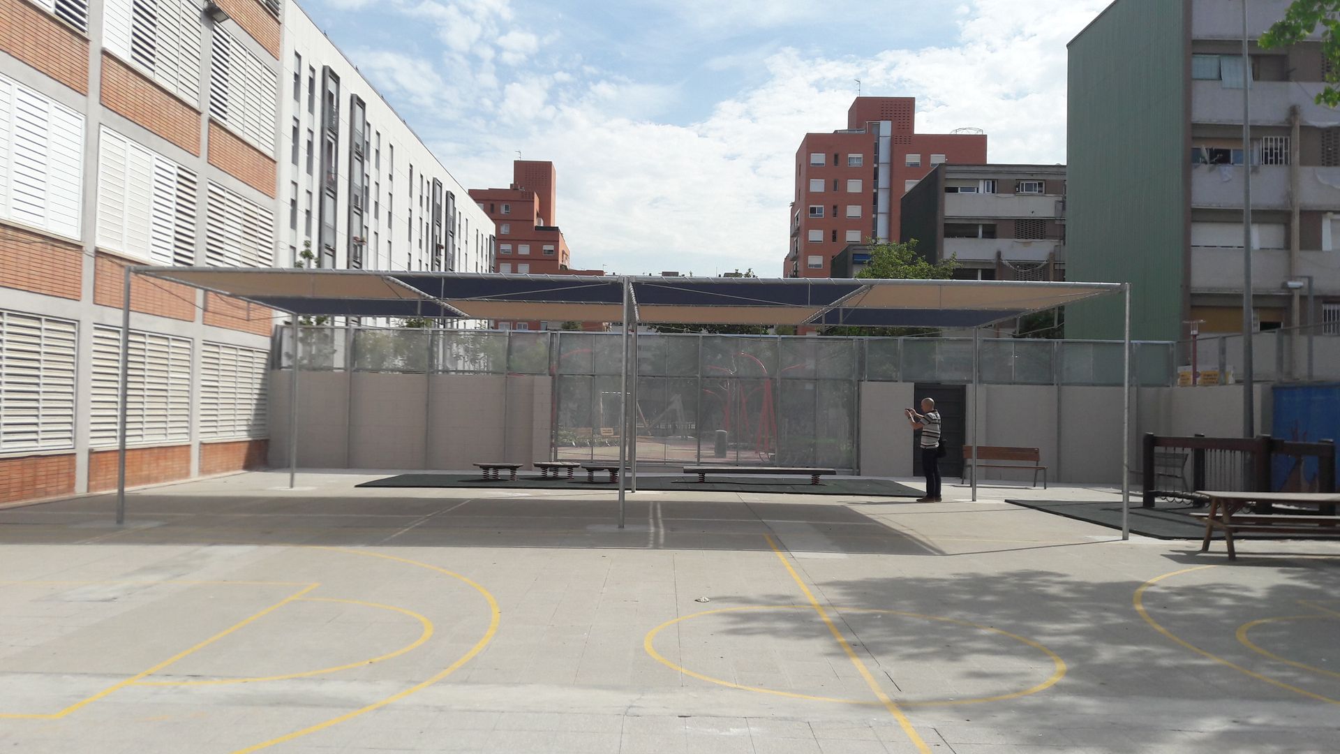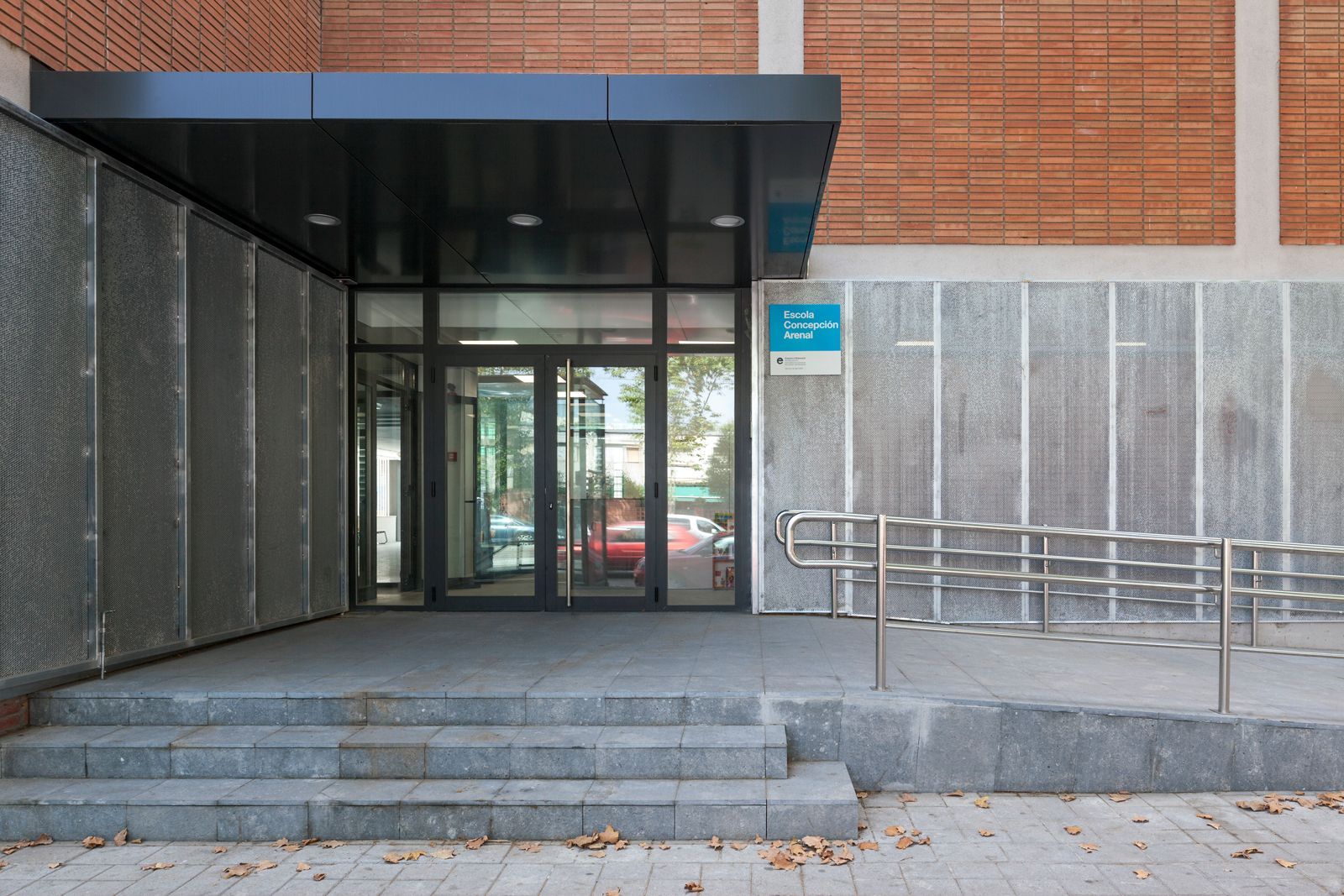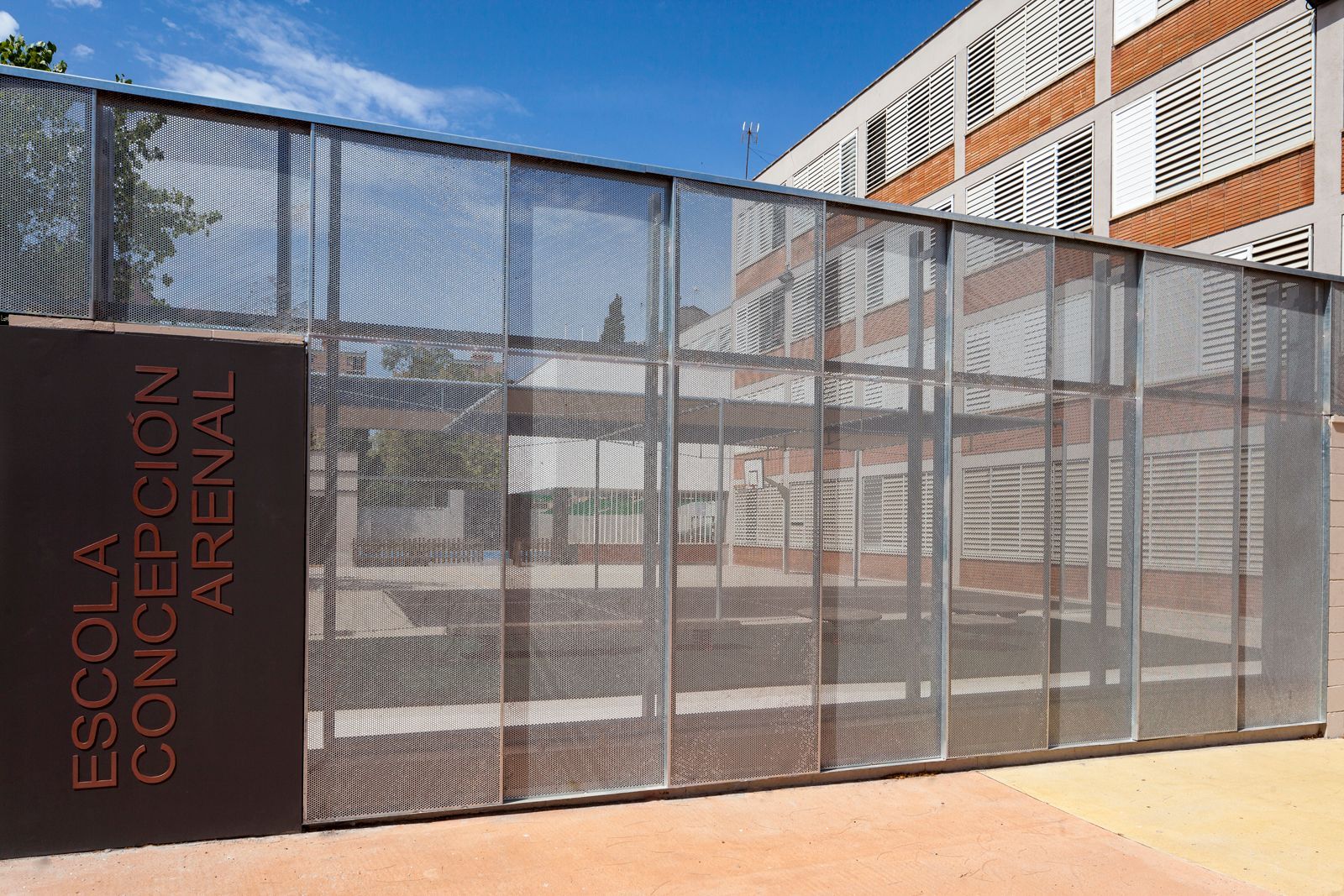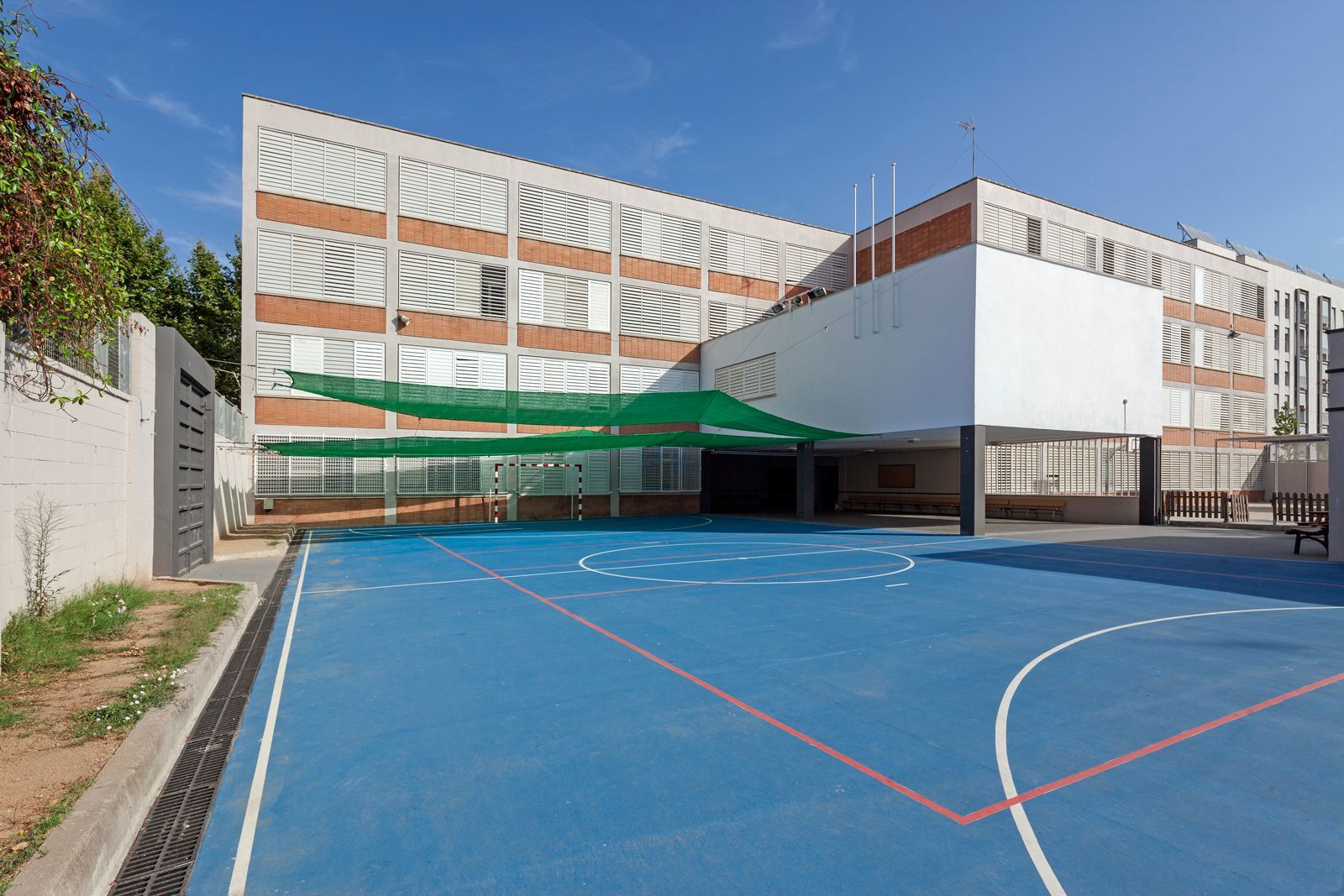 En esta primera fase la actuación se centra en formalizar un nuevo acceso (actualmente se entraba por una puerta de 90 cm), adecuación y modernización de los patios exteriores con una nueva pista polideportiva, cerramientos y zonas de sombra, redefinición de los espacios educativos de profesores y actuaciones varias urgentes de patologías en fachada e interiores.