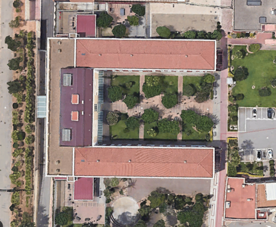 El proyecto se completa con el tratamiento del espacio exterior central, que sirve de comunicación con el resto del complejo sanitario.