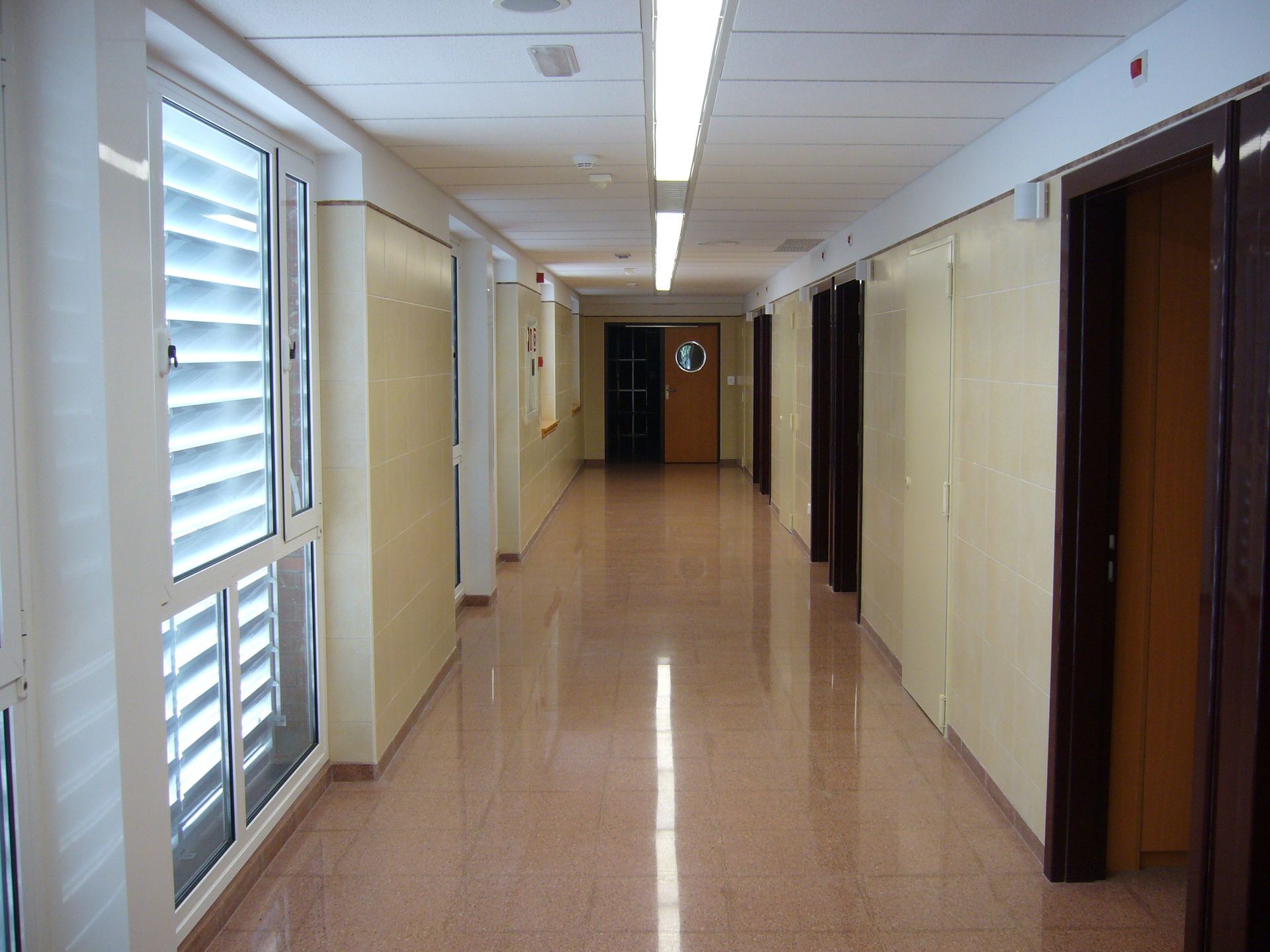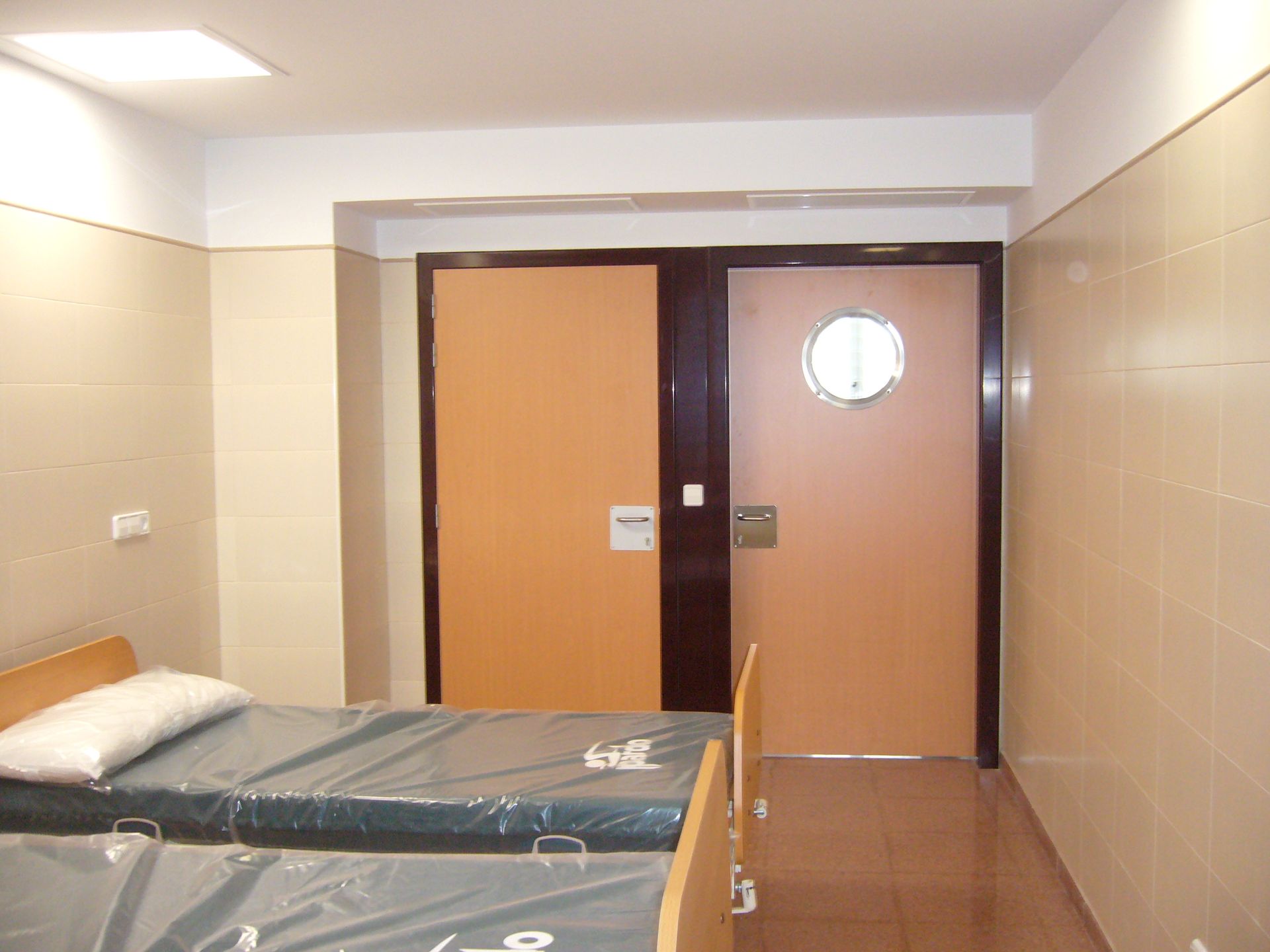 La casuística de los pacientes de este edificio conlleva que interiormente los materiales, acabados y elementos arquitectónicos sean de seguridad para evitar lesiones.