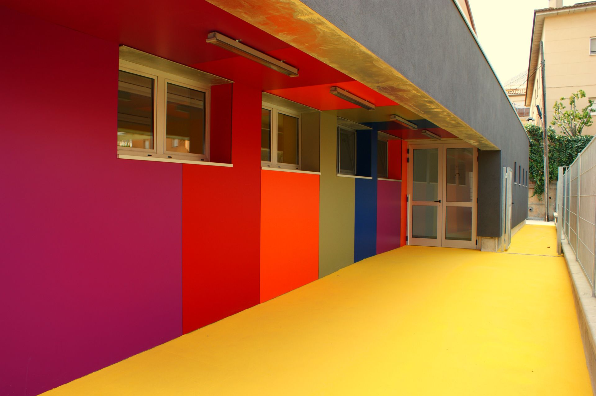 Encargo del Ayuntamiento de Sant Martí de Centelles para la construcción de una guardería y un centro educativo con objeto de eliminar los actuales barracones provisionales. La forma de la parcela, la orientación y los accesos peatonales condicionan el proyecto de este edificio unitario, pero con dos programas funcionales diferenciados y con accesos independientes.